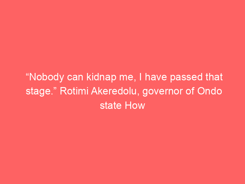 Asked if he is afraid of being kidnapped, the governor said “Nobody can kidnap me, I have passed that stage.”