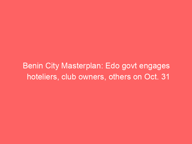 The Edo State Government will, on Monday, October 31, 2022, meet with hoteliers and owners of clubs, lounges, bars and event centres within the Benin metropolis to get the buy-in of the stakeholders in the development of the Benin City Masterplan.