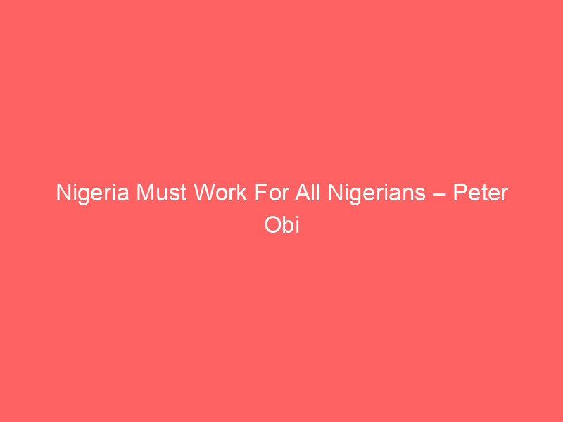 The Labour Party presidential candidate, Peter Obi, says Nigeria must work for all its citizens.
