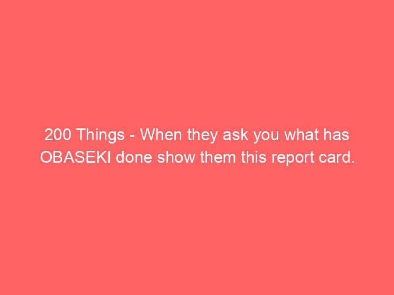 When they ask you what has OBASEKI done show them this report card.