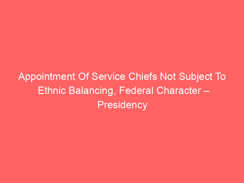The Presidency on Monday said the appointment of service chiefs is not subject to ethnic balancing and the federal character principle.