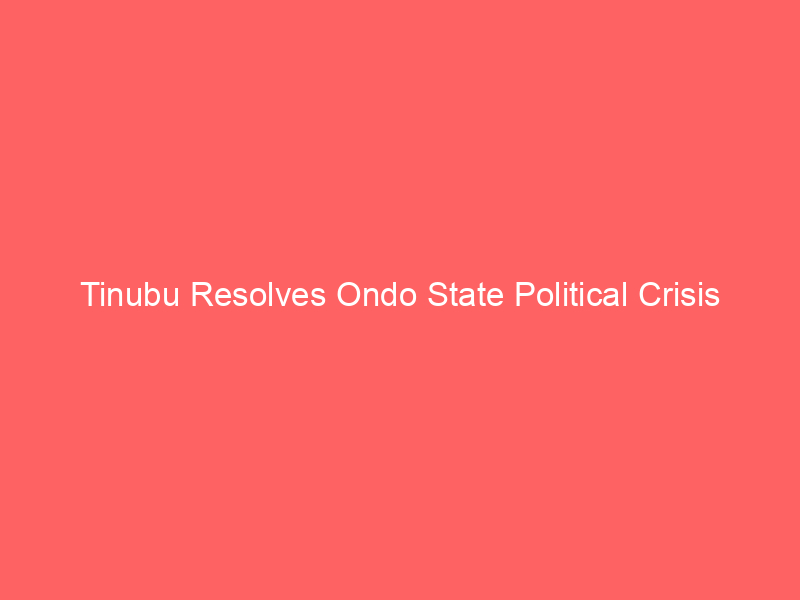 In his bid to restore political stability in Ondo State, President Bola Tinubu, late on Friday, waded into the months-long crisis between factions loyal to the Executive Governor, Rotimi Akeredolu, and the Deputy Governor, Lucky Aiyedatiwa.