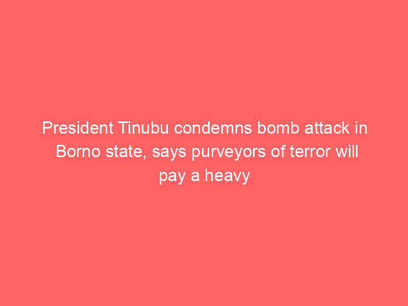 President Bola Tinubu has strongly condemned the bomb attacks in Gwoza Local Government Area of Borno state claiming the lives of several people. In a statement released by his media aide, Ajuri Ngelale, President Tinubu described the attacks as desperate acts of terror and a clear manifestation of the pressure mounted against terrorists and the success achieved in degrading their capacity to launch offensives. The President said the” purveyors of wanton violence shall have a certain encounter with justice. The President added that the cowardly attacks are only an isolated episode as his government will not allow the nation to slither into an era of fear, tears, sorrow, and blood. The President states that his administration is taking necessary measures to secure citizens, emphasizing that efforts will be redoubled to ensure that those who trouble the nation, dispatching precious lives, and disrupting law and order are completely removed. President Tinubu condoles with the victims of the attacks, the families of the deceased, as well as the government and people of Borno State.”Suicide bombers attacked a funeral and a wedding ceremony on Saturday, June 29, killing several persons. The post President Tinubu condemns bomb attack in Borno state, says purveyors of terror will pay a heavy price appeared first on www.adng.ng Get free adverts. An Ad search engine .